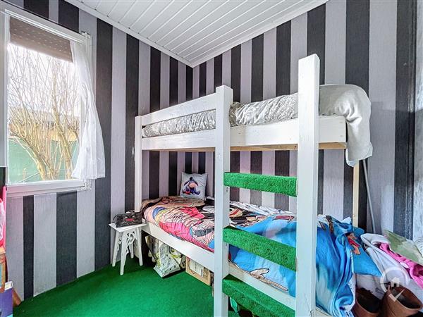 - Chalet: inkomhal, woonkamer met open haard voor het aansluiten van een kachel, half uitgeruste keuken, 2 slaapkamers en doucheruimte;