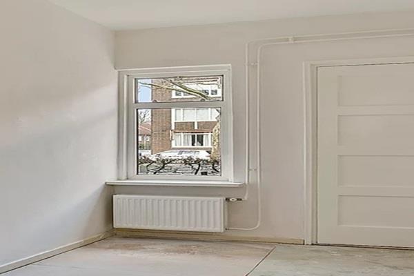 Een ruime woonkamer met veel lichtinval. Vanuit de woonkamer heeft men direct toegang tot de eetkamer. De woonkamer beschikt over grote ramen, die zorgen voor veel lichtinval.