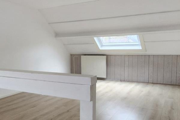 Op de eerste verdieping stap je binnen in de woonkamer. Deze ruimte is voorzien van een laminaatvloer en heeft een eenvoudige maar nette uitstraling. Aan de achterzijde, iets hoger gelegen via een trede, bevindt zich de halfopen keuken. Deze is compact maar functioneel en beschikt over een ingebouwde oven, een afzuigkap en een 4-pits gaskookplaat. Vanuit de keuken zijn zowel de badkamer als de trap naar de bovenverdieping bereikbaar