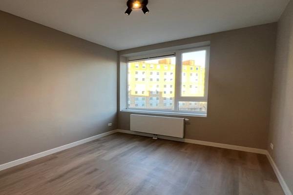 De woonkamer is gelegen aan de voorzijde van het appartement, net als de keuken.