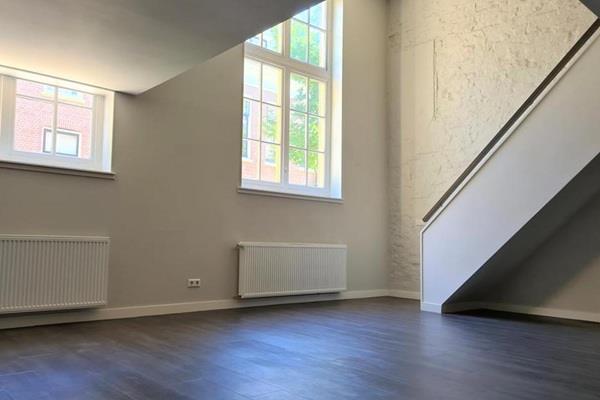 Via de gemeenschappelijke hal komt u binnen in de hal van het appartement. De hal is voorzien van een glazen wand en geeft toegang tot het toilet die voorzien is van een zwevend toilet en een fonteintje. Vanuit de hal komt u binnen in de ruime woonkamer met open keuken. De woonkamer wordt gekenmerkt door het vele licht, de grote ruimte van maar liefst 55 m2 en de hoogte van wel 5 meter hoog bij de vide. De keuken is voorzien van alle gemakken en is luxe afgewerkt. De keuken is voorzien van Inductiekookplaat, vaatwasser, koel- en vrieskast en spoelbak. De keuken geeft tevens toegang tot een kleine berging waar de warmwaterwisselaar is gesitueerd voor de stadsverwarming.