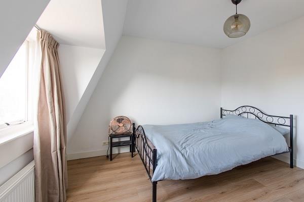 Je komt binnen via de gemeenschappelijke voordeur op de begane grond. Via de trap bereik je de tweede verdieping waar zich de voordeur van het appartement bevindt. Via de trap kom je binnen in de hal, van waaruit je toegang hebt tot alle vertrekken. Zo bereik je vanuit hier het separaat toilet en heb je toegang tot de langgerekte ruime woonkamer aan de achterzijde van het appartement. Grenzend aan de woonkamer de open keuken, die voorzien is van een vaatwasser, oven, kookplaat, koelkast en vriezer.