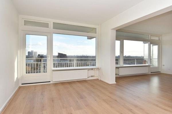 Zeer verzorgde gemeenschappelijke entree met video-intercom en het kantoor van de conciërge. Lift naar de tiende verdieping, via galerij (met prachtig uitzicht) naar de voordeur. Entree appartement, hal met meterkast, L-vormige hal met zeer diepe vaste kast en toegang tot alle vertrekken. Ruime en lichte woon-/eetkamer met toegang tot het zeer zonnige balkon op het zuidoosten met prachtig uitzicht.