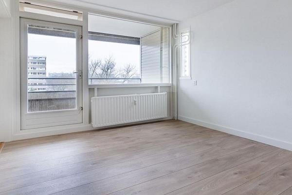 Het appartement is gelegen op de zevende verdieping, welke te bereiken is via het trappenhuis of lift. Via de entree heeft u toegang tot de hal met voldoende kastruimte. Het appartement beschikt over een ruime L-vormige woonkamer met daarbij een gesloten keuken die is voorzien van diverse inbouwapparatuur. Tevens heeft het appartement 2 slaapkamers van ca. 12 en 10m2 en, waarvan de grootste slaapkamer toegang geeft tot het balkon. De badkamer is v.v. een douche en wastafel. Er is een separate berging met aansluiting voor de wasmachine. Het appartement beschikt over een separate toilet. Ook is er op de begane grond een berging van ca. 8m2 beschikbaar en is het vrij parkeren voor het appartementencomplex.