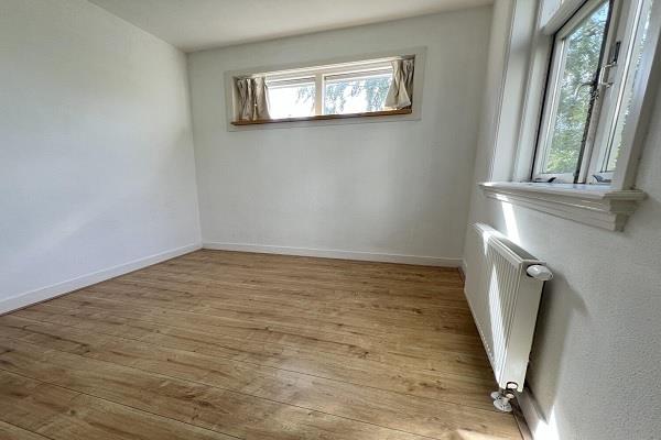 De keuken is functioneel ingericht en voorzien van een gas kookplaat, afzuigkap, koel-vriescombinatie en voldoende opbergruimte. Via de keuken en hal bereik je de badkamer, uitgerust met een wastafel met kastruimte, een douchecabine en een aansluiting voor wasmachine en droger. Achterin de woning bevindt zich de slaapkamer, met genoeg ruimte voor een tweepersoonsbed en een kledingkast. Vanuit hier heb je zicht op de tuin, wat zorgt voor een rustige en ontspannen sfeer.