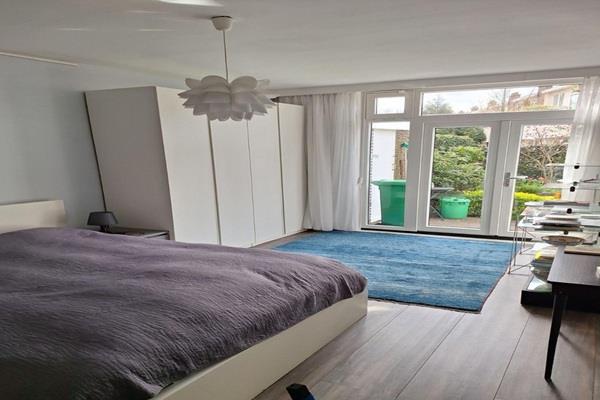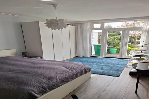De grote slaapkamer met ruime kledingkast, biedt niet alleen een groot 2-persoonsbed maar ook een klein gezellig zitje in de hoek.Ook vanuit de slaapkamer kunt u het terras en achtertuin bereiken.