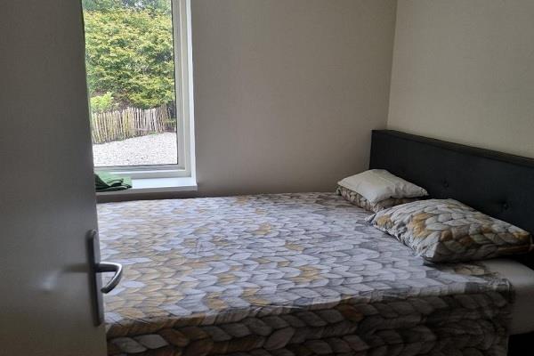 Hal, woonkamer met open keuken en openslaande deur naar ruime tuin, deze is gelegen op het noorden maar wel zonnig, toilet, 2 slaapkamers, wasruimte met witgoed aansluitingen en badkamer voorzien van douche, glazen douchewand en modern wastafelmeubel.