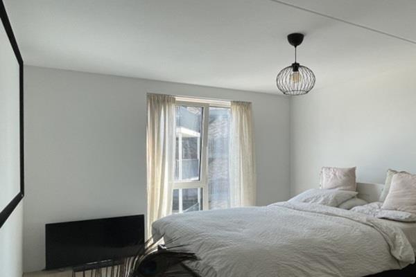 De badkamer is voorzien van een wastafel met spiegel, een handige douchewand en een handdoekradiator. Verder zit er een apart, zwevend toilet nabij de hal.