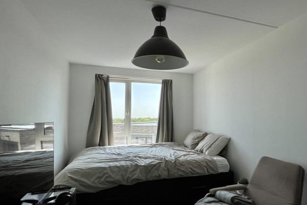 De badkamer is voorzien van een wastafel met spiegel, een handige douchewand en een handdoekradiator. Verder zit er een apart, zwevend toilet nabij de hal.