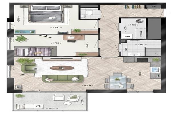 Je komt binnen in de hal met toegang tot de technische ruimte wat tevens ook als inpandige berging dient. De woonkamer is voorzien van een moderne keuken die beschikt over inbouwapparatuur, waaronder een inductie kookplaat, combi oven/magnetron, afzuigkap, vries/koelcombinatie en vaatwasmachine.