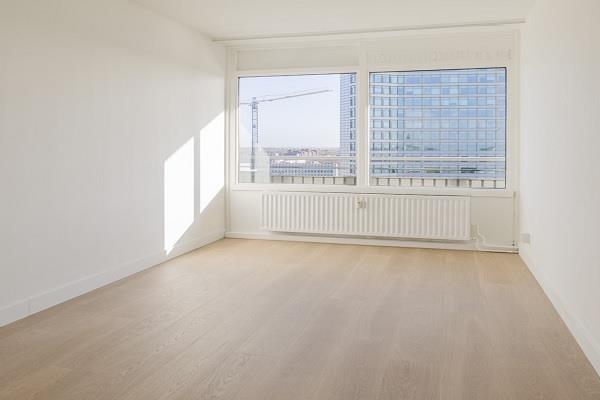 13e verdieping: ruime hal met meterkast, toilet met fonteintje, grote bergkast met boiler t.b.v. het warme water in de badkamer en keuken. Geheel betegelde badkamer voorzien van inloopdouche, wastafel en wasmachine- droger aansluiting. Toegang naar de lichte, ruime woonkamer met open keuken. De toegang naar het balkon is vanaf de woonkamer.