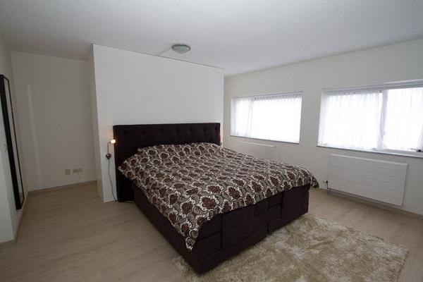 Afgesloten entree met trap, overloop met toegang tot de badkamer, slaapkamer en de woon/eetkamer/keuken.
