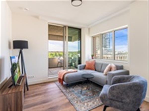 Vanuit de slaapkamer loopt u door naar de open keuken, die is uitgerust met diverse inbouwapparatuur en voldoende werkruimte. De keuken staat in open verbinding met de lichte en ruime woonkamer, waar grote ramen zorgen voor een prettige hoeveelheid daglicht en een uitnodigende sfeer.