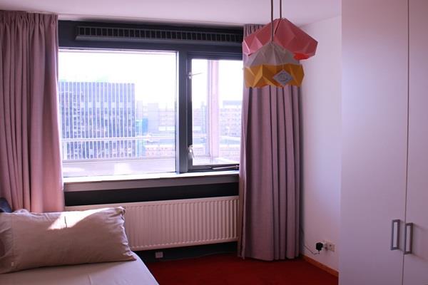 Ruime, lichte woonkamer van 36 m2, met massief eiken parket vloer. Open keuken van 6 m2 voorzien van magnetron, afzuigkap, ijskast, vaatwasser. Badkamer met bad, aparte douche, wastafel. Slaapkamer van 14,5 m2, voorzien van 2-persoonsbed en kledingkast. Slaapkamer 11,5 m2 voorzien van 1-persoonsbed en kledingkast. Het appartement is zeer centraal gelegen, naast centraal station en dichtbij centrum.