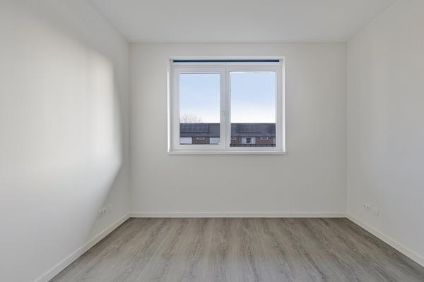Bij binnenkomst tref je de meterkast en een apart hangtoilet. Verderop in de hal bevindt zich de moderne badkamer, uitgerust met een inloopdouche, een wastafel met meubel en spiegel. Een ruime slaapkamer met laminaatvloer.
