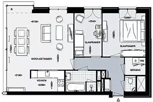 Het appartement beschikt over twee slaapkamers. De hoofdslaapkamer is circa 15 m² groot en de tweede slaapkamer meet ongeveer 10 m². Beide kamers zijn praktisch in te richten en bieden voldoende ruimte voor kasten en andere meubels. Daarnaast is er een aparte berging aanwezig met aansluiting voor wasmachine en droger, evenals een nette badkamer en een separaat toilet.
