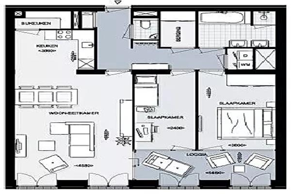 Het appartement beschikt over twee comfortabele slaapkamers die rust en privacy bieden, ideaal voor zowel slapen als thuiswerken. De moderne badkamer is uitgerust met een ligbad, een afzonderlijke douche en een wastafel, terwijl het toilet separaat is geplaatst voor extra gemak.
