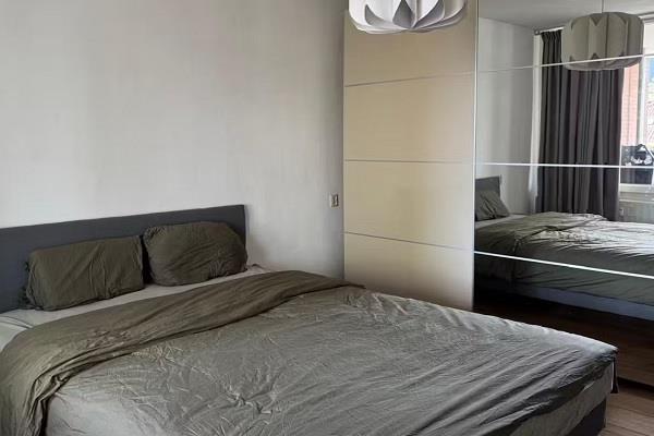 Een slaapkamer met een bed (160 x 200 cm) plus een extra slaapbank in de woonkamer voor gasten of kinderen