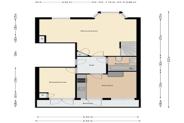 Via de centrale entree en het verzorgde trappenhuis bereikt u het appartement op de tweede verdieping.