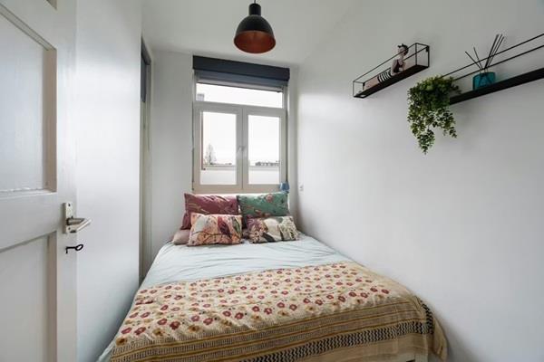Via de hal zijn de overige vertrekken bereikbaar. De badkamer (2018) is keurig afgewerkt en volledig betegeld. Deze beschikt over een inloopdouche, wastafel en toilet. Aan de rustige achterzijde bevindt zich de knusse slaapkamer. Daarnaast is vanuit de hal ook de inloopkast bereikbaar, ideaal voor het opbergen van je gehele garderobe en al je spullen.