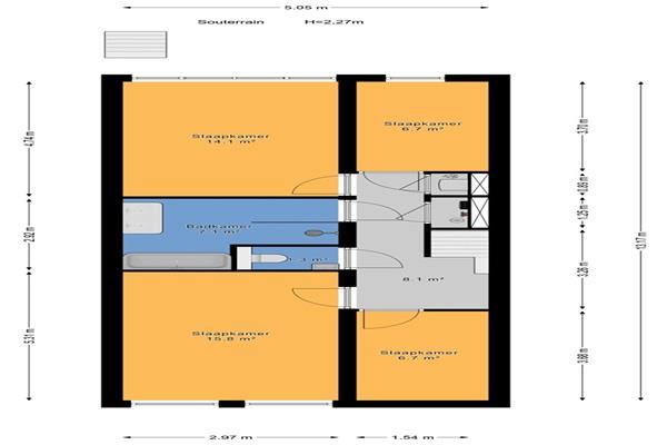 Souterrain etage: Het souterrain is voorzien van 3 slaapkamer met allemaal veel natuurlijk licht, er is een ruime berging met aansluiting voor wasmachine en droger. De grote badkamer is voorzien van een dubbele wastafel, modern bad en inloopdouche, tevens heeft het souterrain een tweede toilet.