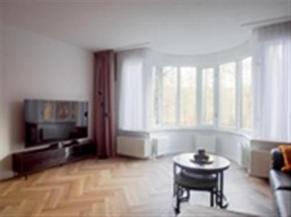Indeling: Entree van het gebouw op de begane grond, entree van de woning bevindt zich op de eerste verdieping. De hal geeft toegang tot alle vertrekken. De ruime woon- en eetkamer bevat veel licht en heeft unieke ronde erker met wijds uitzicht over de Bezuidenhoutseweg en het Haagse Bos. De moderne keuken bevat alle benodigde inbouwapparatuur en geeft toegang aan de bijkeuken met aansluiting voor was- en droogmachine. De hal geeft verder toegang aan twee ruime slaapkamers waarvan de hoofdslaapkamer ook een balkon bevat op het zuidoosten met uitzicht over de wijk. De verzorgde badkamer heeft een ruime regendouche en een grote wastafel. De toilet bevindt zich separaat.