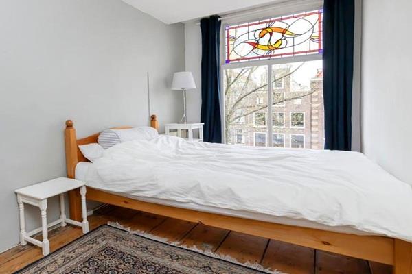 Vanuit de woonkamer kunt u genieten van een schitterend uitzicht over de Bloemgracht. De twee grote ramen aan de voorzijde vullen de ruimte met veel natuurlijk daglicht.