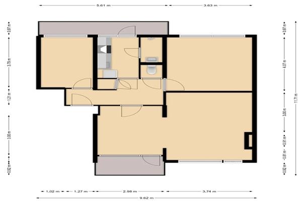 -Keuken van ca. 5,5 m² met toegang tot het balkon van ca. 5 m²