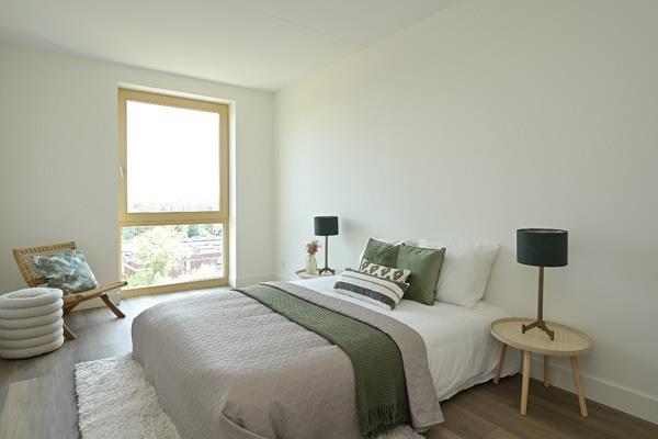 De woonkamer biedt toegang tot een balkon, waar je heerlijk buiten kunt zitten en genieten van de (middag)zon.