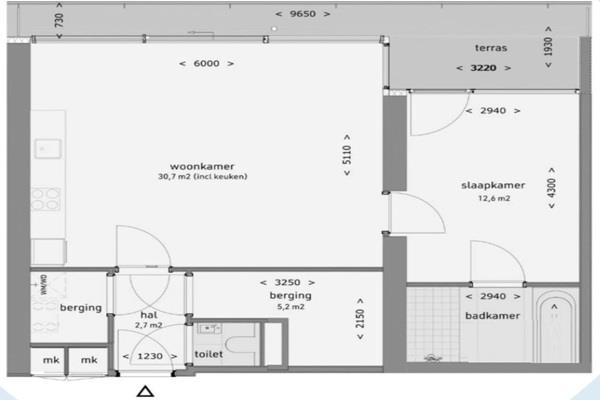 Entree via de gezamenlijke hal met lift en toegang tot het appartement. De hal biedt toegang tot alle vertrekken. De woonkamer is licht en ruim en voorzien van een open keuken in lichte kleurstelling met diverse inbouwapparatuur. De eethoek sluit aan op een cozy modulaire bank en vanuit de woonkamer is er directe toegang tot het zeer ruime balkon. De slaapkamer is ingericht met een tweepersoonsbed en een linnenkast en geeft toegang tot de badkamer. De badkamer is voorzien van een douche en een bad, wastafel en spiegel. Verder beschikt de woning over een apart toilet een interne berging in gebruik als proviandkast en een separate wasruimte met wasmachine en droger.