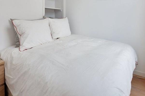 De lichte slaapkamer bevindt zich aan de voorzijde van de woning.