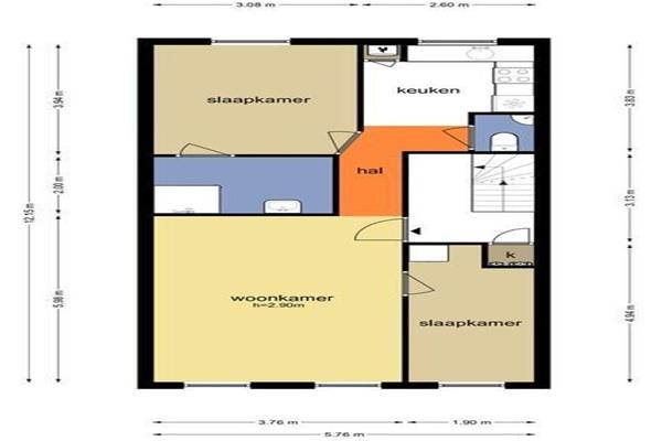 Entree; hal, ruime lichte woonkamer, keuken voorzien van inbouwapparatuur, toilet, twee ruime slaapkamers. De badkamer met douche en wastafel is bereikbaar vanuit de grote slaapkamer.