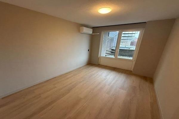 De royale woonkamer aan de voorzijde is voorzien van een laminaatvloer, behangwanden, spuitwerkplafond, intercom en grote schuifpui naar het brede balkon. Een praktische, afsluitbare voorraadkast bevindt zich hier ook. Een glazen pui zorgt voor veel lichtinval en een gezellig uitzicht op de omgeving.