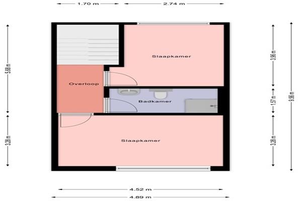 overloop (ca. 4 m²), twee slaapkamers (ca. 11 m² en 15 m²) en de badkamer