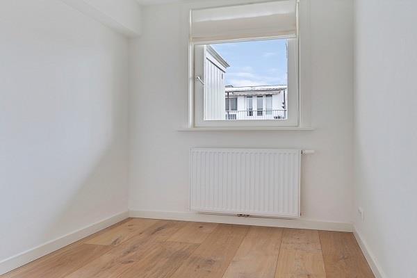 De inpandige trap geeft toegang tot de derde en meeste riante slaapkamer, gelegen aan de achterzijde de vierde verdieping. Aangrenzend aan deze slaapkamer bevindt zich de tweede badkamer, voorzien van een inloopdouche, wastafelmeubel en toilet.
