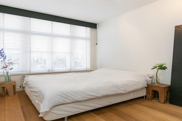 De open keuken, welke is voorzien van alle wenselijke inbouwapparatuur en de woonkamer zijn aan de achterzijde gelegen. Door de hoge raampartij met openslaande deuren is het appartement zeer licht en heeft een fijn uitzicht op de goed onderhouden tuin.