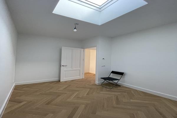 Het appartement beschikt over twee slaapkamers, in de hal en in de kleinere slaapkamer zijn twee lichtkoepels geplaatst waardoor er veel natuurlijk licht binnenvalt. De grote slaapkamer grenst aan een ruim balkon van circa 9,5m2. De badkamer is ook volledig gerenoveerd en is inmiddels een luxe afgewerkte badkamer voorzien van twee wasbakken met genoeg kastruimte eronder met daarboven een mooie grote spiegel met licht erin. De douche is erg ruim en is voorzien van een ingebouwde regendouche en een aparte handdouche. Het toilet is separaat van de badkamer.