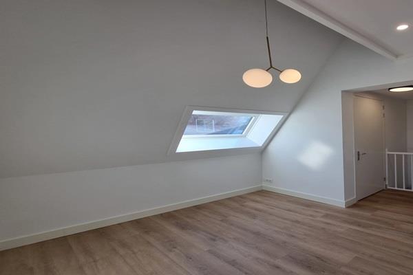 Via eigen entree betreedt u de woning. Via een steellook glazen deur in de hal, waar ook het toilet gelegen is, is de lichte woonkamer met half open keuken toegankelijk met een plafond van maarliefst 5 meter hoog met karakteristiek puntdak. De gehele woning is voorzien van PVC visgraatvloer en vloerverwarming. De moderne keuken in L-vorm is in lichte kleurstelling en voorzien van gaskookplaat, afzuigkap, koelkast, vriezer, magnetron/ovencombinatie en vaatwasser. Op deze etage is tevens een extra opslagruimte gelegen. Via een trap is de tweede etage te bereiken waar de ruime en lichte slaapkamer gelegen is welke is voorzien van een laminaatvloer in licht eiken kleurstelling en raamjaloezieen. Let op: Deze kamer heeft van vide waardoor er een extra slaap/opslagplek is. De badkamer is geheel betegeld in lichte kleurstelling, voorzien van een extra wc, inloopdouche en wastafel met spiegel welke is voorzien van verlichting en digitale klok. Deze unieke woning was oorspronkelijk onderdeel van de Montessori school welke dateert uit 1920. Deze is vervolgens volledig gerenoveerd met behoudt van klassieke elementen. U beschikt tezamen met de overige huurder van dit complex over een uniek, goed onderhouden buitenplaats met tuin welke middels een afgesloten poort te bereiken is.