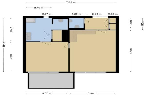 De woning beschikt over een entree/ hal met kast en toilet. Ruime woonkamer met open keuken (L-opstelling voorzien van apparatuur), een ruime geheel betegelde badkamer voorzien van dubbele wastafel, douche, toilet en ruimte voor wasmachine/ droger. Terras via schuifpui bereikbaar, ca. 9 m2 en gelegen op het zuiden. De woning is voorzien van een pvc-stroken vloer in een neutrale kleurstelling, de wanden zijn behangen en de plafond v.v. een fijn korrel spuitwerk.