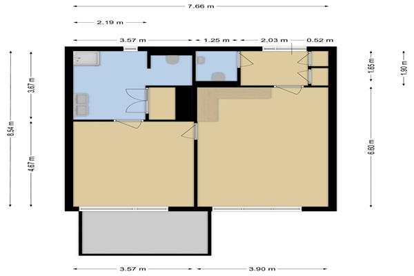 De woning beschikt over een entree/ hal met kast en toilet. Ruime woonkamer met open keuken (L-opstelling voorzien van apparatuur), een ruime geheel betegelde badkamer voorzien van dubbele wastafel, douche, toilet en ruimte voor wasmachine/ droger. Terras via schuifpui bereikbaar, ca. 9 m2 en gelegen op het zuiden. De woning is voorzien van een pvc-stroken vloer in een neutrale kleurstelling, de wanden zijn behangen en de plafond v.v. een fijn korrel spuitwerk.