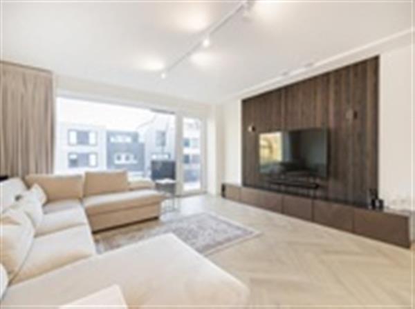 Bij binnenkomst stap je in een ruime hal met toegang tot een separaat toilet, het woongedeelte en de slaapkamers. De lichte woonkamer met grote raampartijen is voorzien van stijlvolle schuifdeuren die uitkomen op een royaal balkon. De open keuken is modern en volledig uitgerust met inbouwapparatuur, waaronder een inductiekookplaat, combi-oven, koelkast en vaatwasser.
