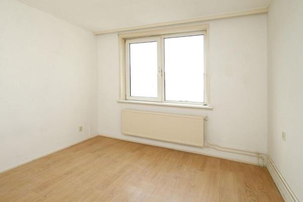Hal, trap naar eerste etage. Woonkamer met balkon. Dichte keuken met diverse inbouwapparatuur. Separaat toilet.