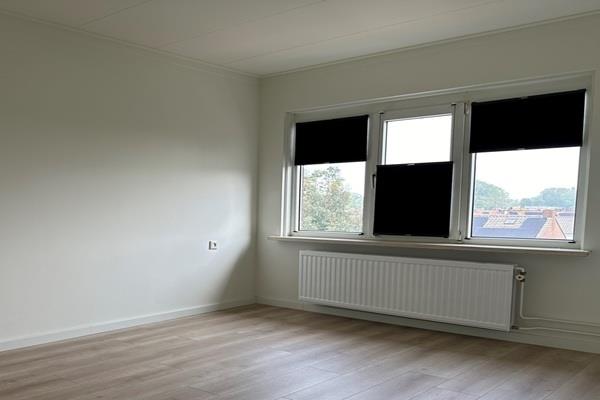 Bij binnenkomst middels het portaal op de begane grond heeft men toegang tot de meterkast, kelder en trapopgang naar de eerste verdieping. Op de eerste verdieping bereikt men via de overloop het toilet en de woonkamer (ca. 25) met open keuken (ca. 6 m2). Middels de keuken is het balkon te bereiken (ca. 5 m2). De luxe keuken is voorzien van een inbouw koelkast, vaatwasmachine, gaskookplaat, afzuigkap en combi-oven. Op de eerste verdieping bereikt men middels de overloop de badkamer voorzien van inloopdouche met regendouche, wastafel met kastje en designradiator. Tevens bevinden zich hier drie slaapkamers (ca. 12 m2, 10 m2 en 8 m2). De woning is zeer netjes afgewerkt en in nette staat.