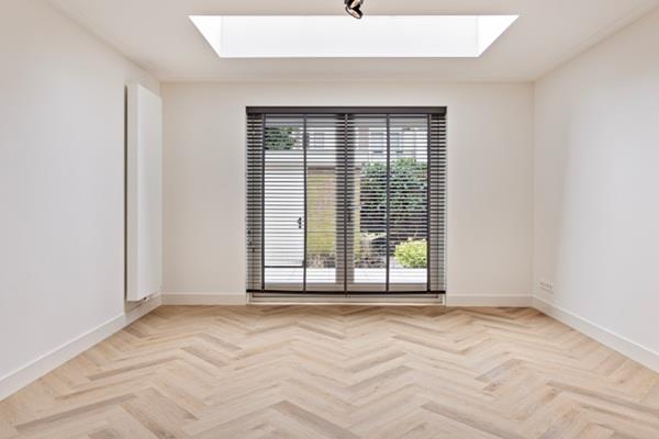 Je komt binnen in de ruime hal, die toegang geeft tot woonkamer, slaapkamer, badkamer en toilet. Aan de voorzijde is de ruime slaapkamer (16m2) gelegen. Aan de achterzijde is de woonkamer met open keuken. De luxe keuken is voorzien van een inductiekookplaat, vaatwasser, koel,-vriescombinatie, combi-oven, wijnklimaatkast en Quooker. Vanuit de woonkamer is de fraai aangelegde tuin (W) met schuur te bereiken. Tevens is de 2e slaapkamer (6,5m2) gelegen aan de woonkamer. Centraal is in het appartement is het toilet, wasruimte, berging en de moderne badkamer. De mooi afgewerkte badkamer is uitgerust met een mooie inloopregendouche, dubbele wastafel met meubel en handdoekradiator. Het gehele appartement wordt opgeleverd met een mooie PVC vloer. De ramen in de woonkamer worden voorzien van donkere houten luxaflex en de slaapkamers worden voorzien van donker grijze gordijnen en vitrage.