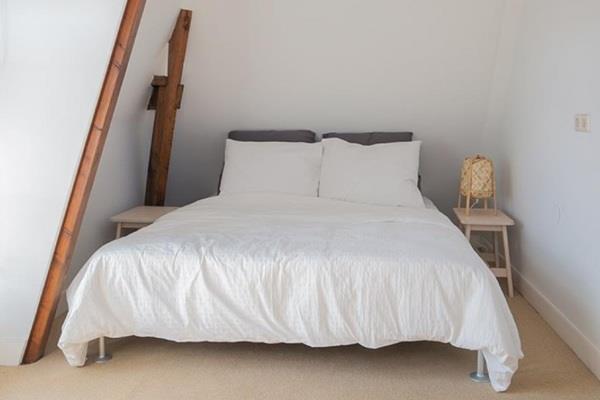 De hoofdslaapkamer bevindt zich aan de voorzijde van het gebouw en kijkt uit op de rustige Da Costastraat. Via een kleine trap bereikt u een andere kamer onder het dak waar eventueel ook een bed geplaatst kan worden.