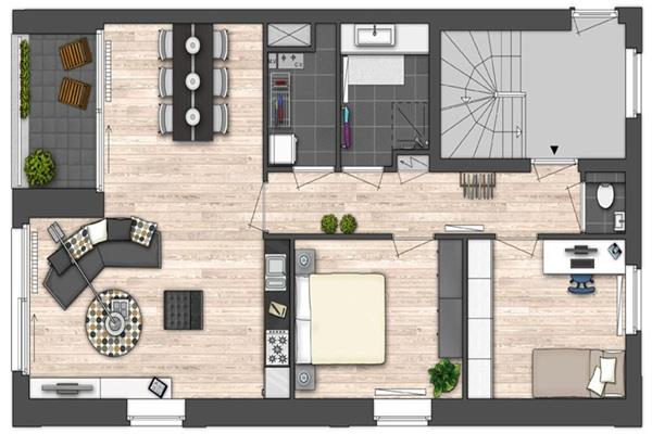 Het appartement zit op de derde verdieping. Vanuit de hal kun je naar de slaapkamers, woonkamer, berging, toilet en badkamer. De woonkamer zit aan de voorzijde en heeft een moderne open keuken. De keuken is voorzien van een vaatwasser, inductiekookplaat, koelkast met vriesvakje en een combi-oven. Vanuit de woonkamer kun je door de schuifpui naar het balkon. De slaapkamers zijn ruim en de achterste heeft een prachtig uitzicht waarbij zelfs de Martinitoren te zien is. De badkamer is voorzien van een dubbele wastafel en een nette douche. Tevens zit er nog een berging met CV en wasmachine aansluiting.