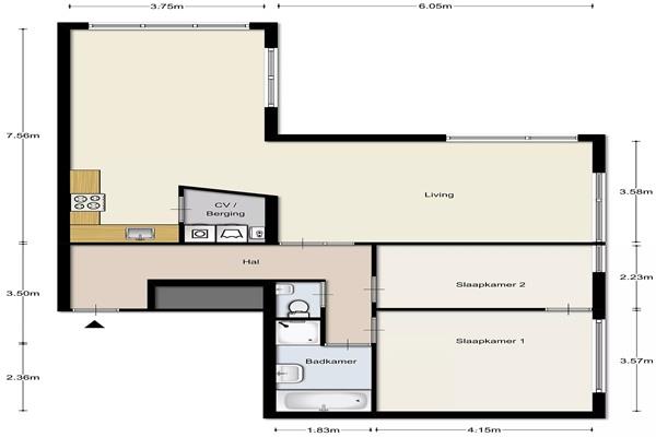 De inpandige berging biedt onder andere plaats voor de wasmachine en condensdroger. Daarbij biedt deze berging een hoop extra bergruimte binnen de muren van het appartement.