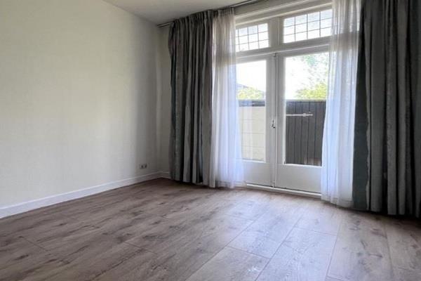 deuren naar de ruime achtertuin. Hoofdslaapkamer aan de achterzijde met toegang tot de tuin, tweede