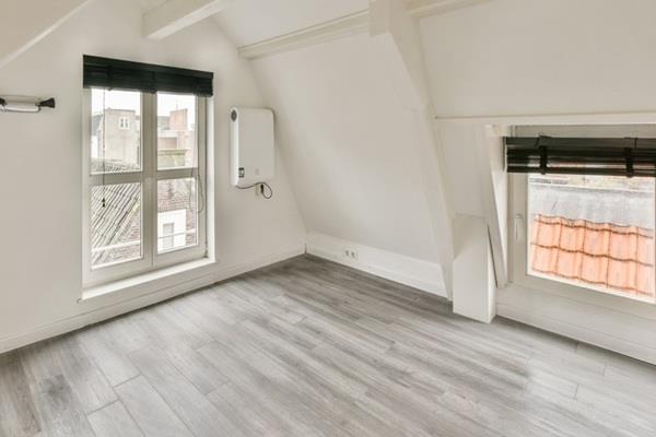 Het gemeenschappelijke trappenhuis biedt toegang tot het appartement, gelegen op de derde en vierde verdieping. De royale woonkamer heeft grote raampartijen die zorgen voor een prachtige lichtinval. De open keuken is modern en voorzien van diverse inbouwapparatuur. Op dezelfde verdieping bevindt zich de eerste badkamer, uitgerust met een douche, wastafel en toilet.