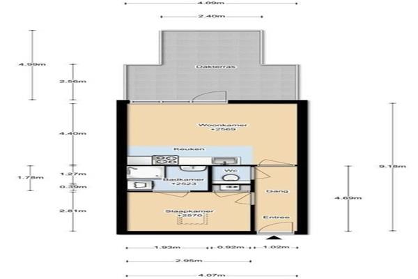 Het appartement beschikt over een omheind privé terras gelegen voor de voordeur van het appartement. Entree in hal met meterkast, cv-kast, separate toilet ruimte en toegang tot de woonkamer en slaapkamer.